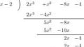 なので,\(f(x)\)は\((x-2)\)を因数にもつので,\(f(x)\)を\((x-2)\)で割ると商\((2x^2+5x+2)\)が求まる.